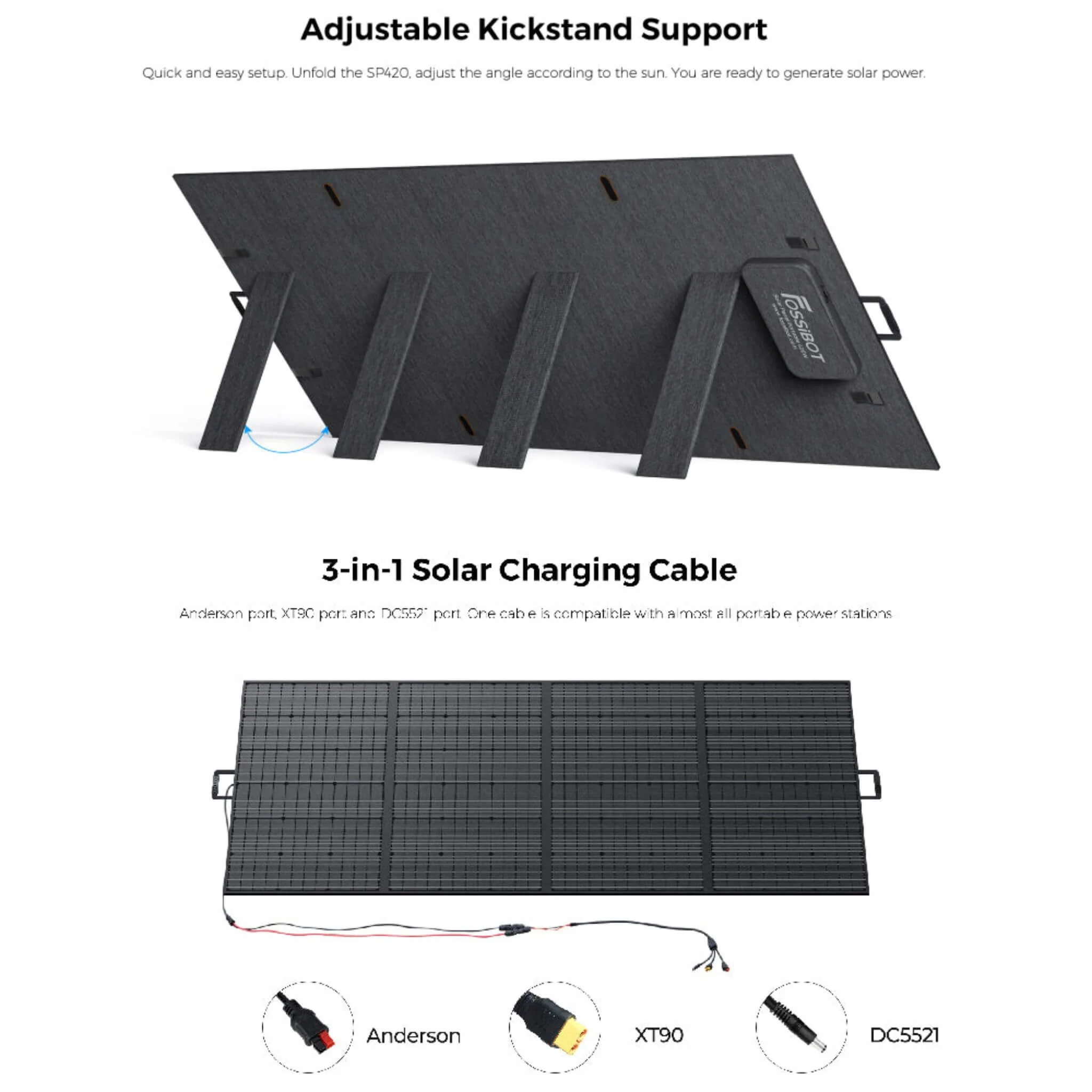 Fossibot SP420 Solar Panel W/ Adjustable Kickstand And MC4 Connector, 420W (SAK15974)