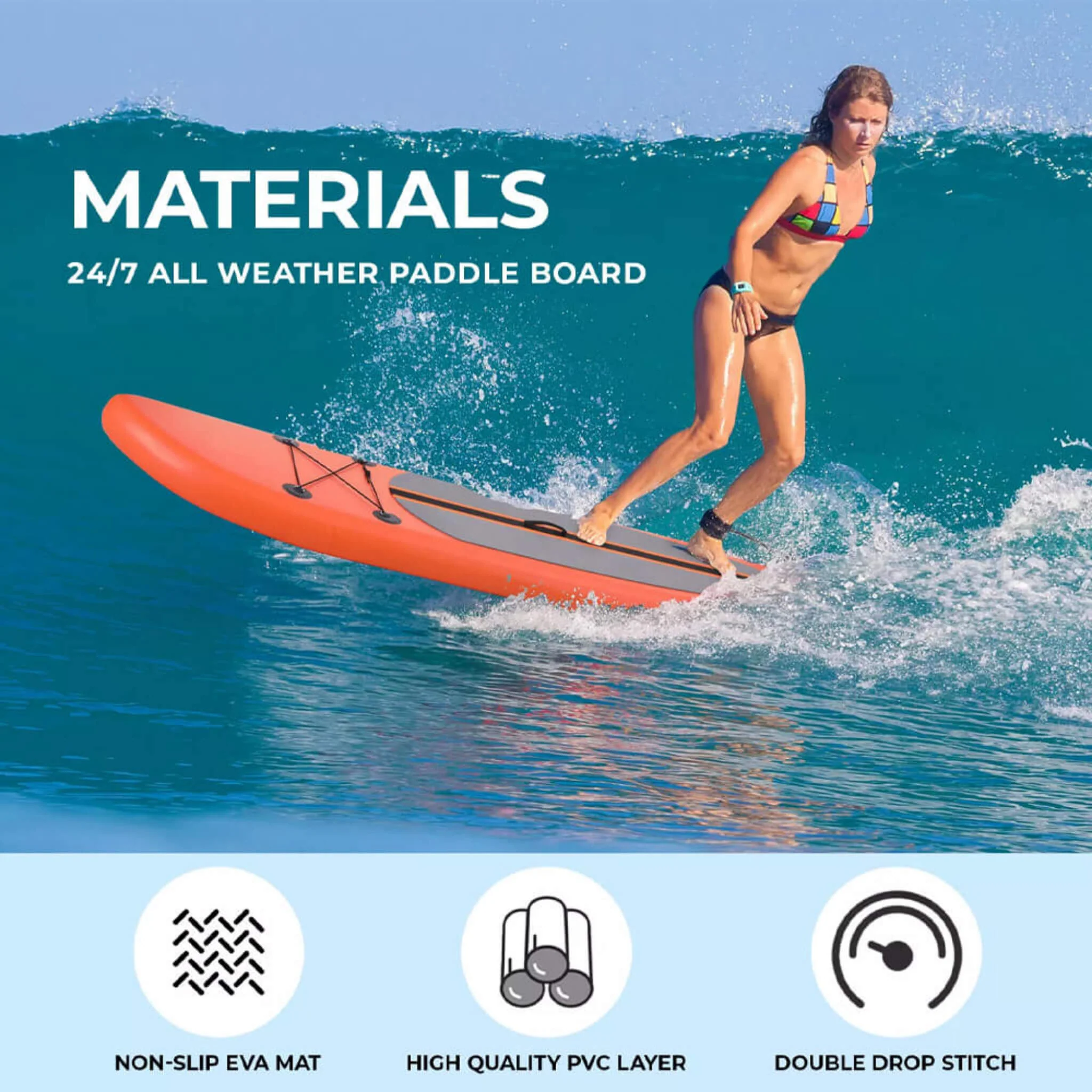 - Multi-layer PVC material and drop-stitch construction make it durable.